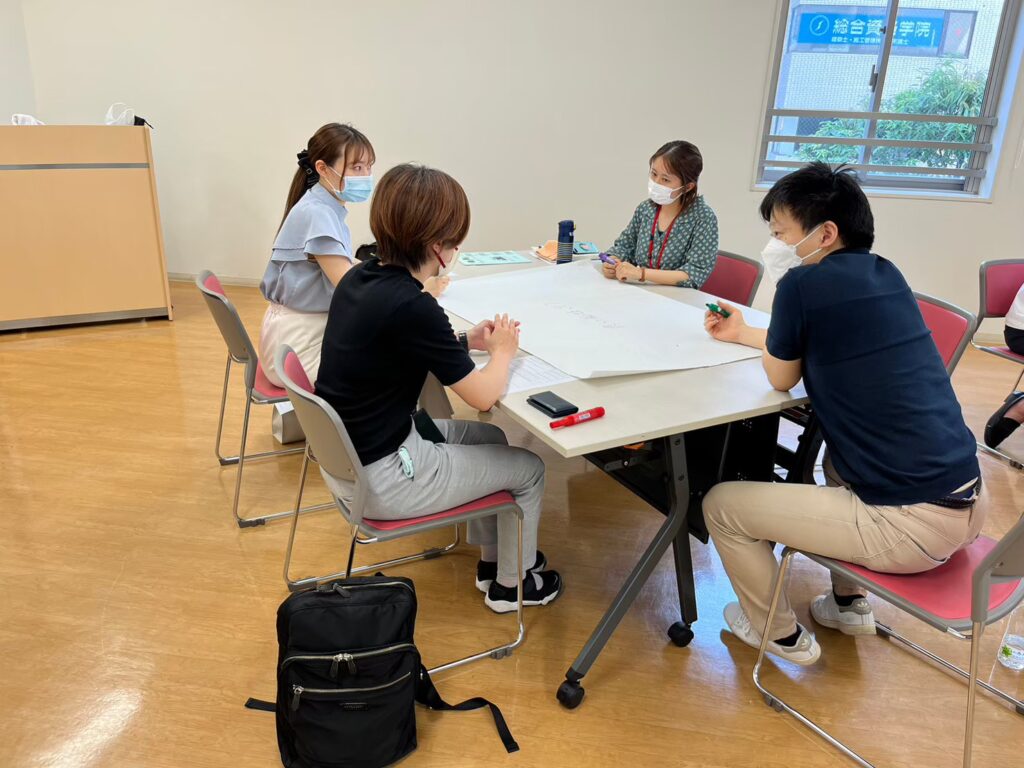 ロールプレイを自分たちで行うワークショップはよくあるんですが、ロールプレイを客観的に観て、感じて、学び取るというワークはあるようでなかった。さらにその後、参加者同士で学びのシェアタイムをワールドカフェ形式で実施。