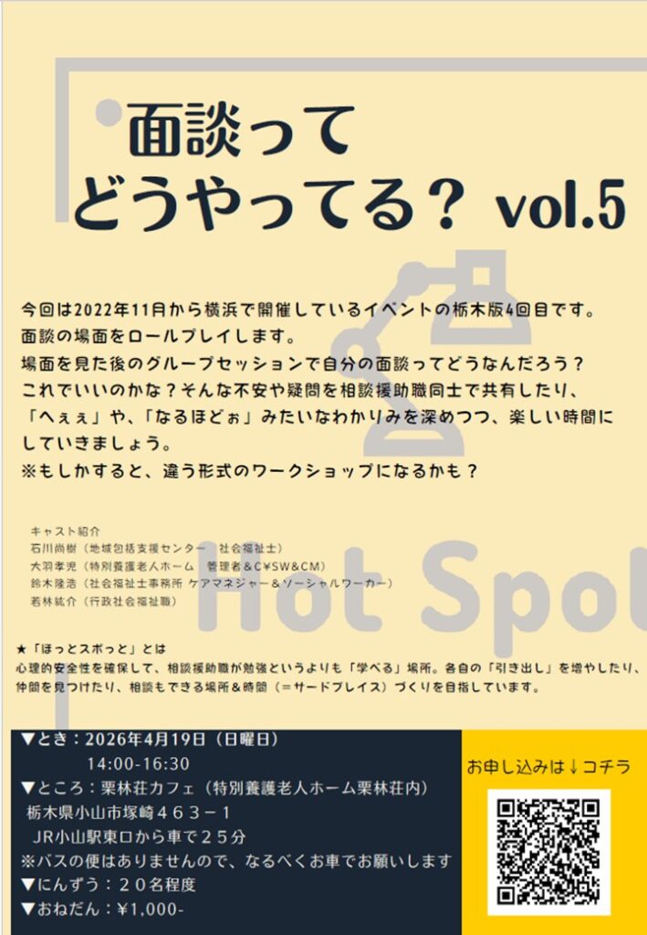 発足4年目となっている「ほっとスポっと」の小山開催も5回目を数えます。